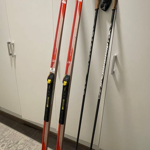 Erinomaisessa kunnossa. Olleet hoikan 198 cm pitkän miehen käytössä, joka ei sitten montaa kertaa hiihtänytkään. Sukset eivät ole never-waxit tai karvapohjat.