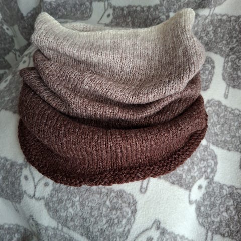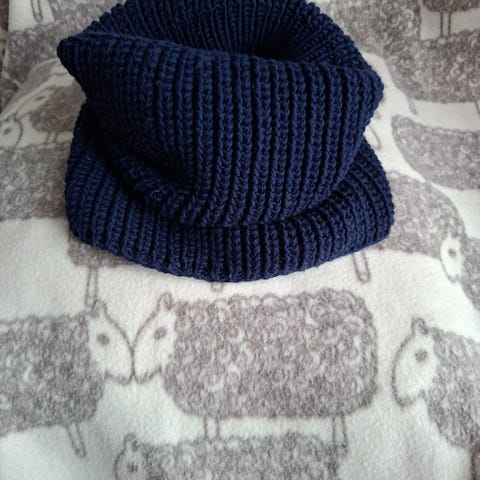 Uusi itseneulettu lämmin kauluri/tuubihuivi. Pehmeä merinovilla ja lurex. Koko 26×44cm.