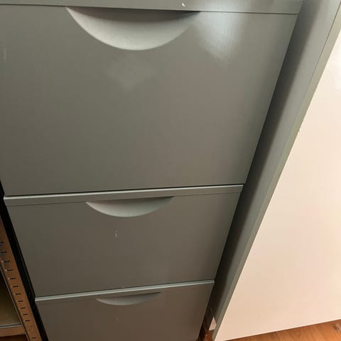 Arkistokaappi, väriltään harmaa. Kaapissa on lukittava ylälaatikko ja kaksi isompaa säilytystilaa alapuolella. Soveltuu asiakirjojen ja muiden tavaroiden järjestämiseen ja säilytykseen.