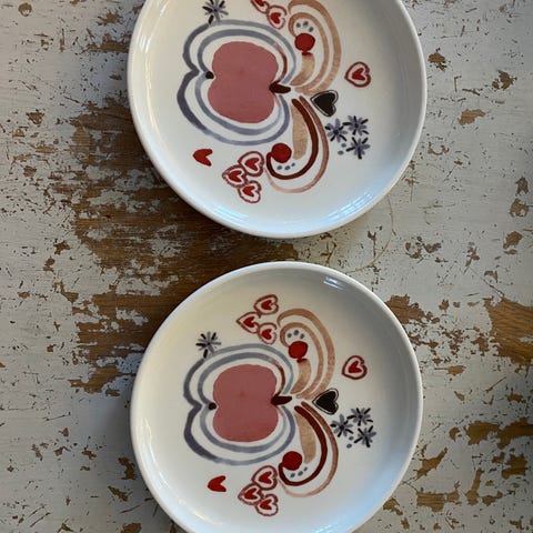 Toinen uusi ja tarrallinen, toisessa ollut hetken keksejä. Myynnissä myös kaksi lautasta samaa sarjaa.