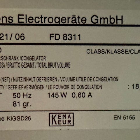 Myynnissä pitkä pakastin Siemens, Leveys ja syvyys 60 cm