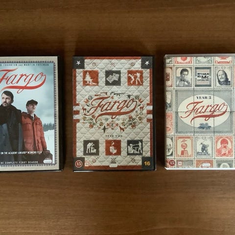 Kulttimaineen saavuttaneen Fargo-sarjan kaksi ensimmäistä kautta. Nouto Tampere tai postikulut ostajalle.