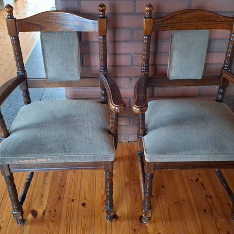 Kaksi verhoiltua vanhaa tuolia. 20€/kpl tai yhteensä 35€.