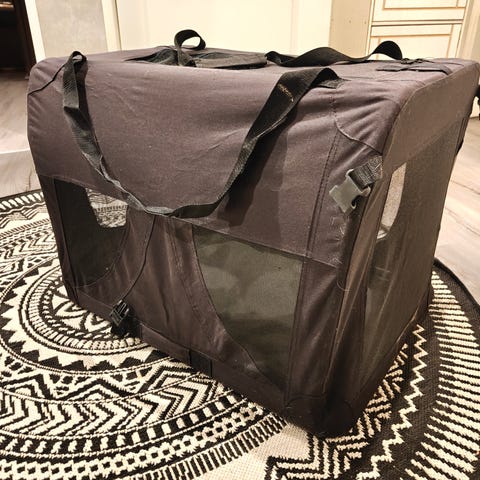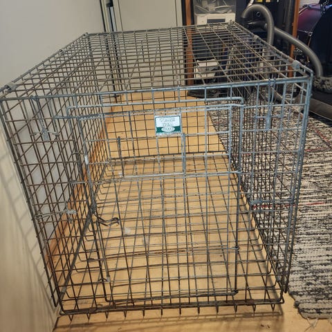 Koirankuljetushäkki valmistettu metallista, väriltään musta. Sopii lemmikkien kuljetukseen ja turvalliseen säilytykseen. Varustettu kantokahvalla ja ovella, joka voidaan lukita.