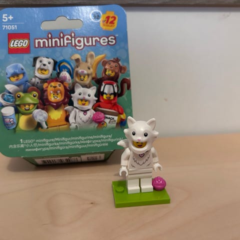 LEGO Minifigures – tyttö valkoisessa kettupuvussa (White Fox Costume Girl, sarja 28).