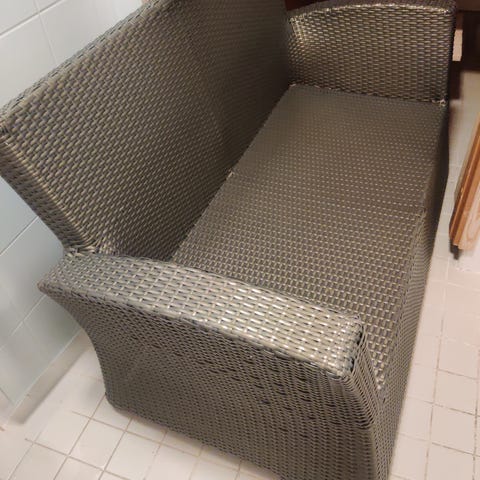 Sopii sisä ja ulkokäyttöön. Meillä ollut lasitetulla parvekkeella. Pieniä vikoja, mutta ikänsä puolesta hyvässä kunnossa.( Näkyy kuvista)