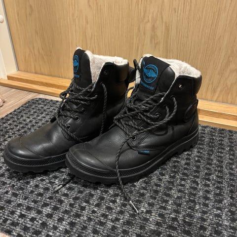 Palladium talvikengät, koko 40. Väriltään ruskeat ja varustettu lämpimällä vuorella. Soveltuvat käytettäväksi kylmissä ja lumisissa olosuhteissa.