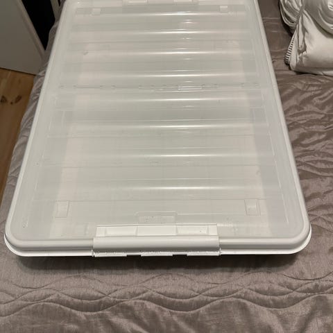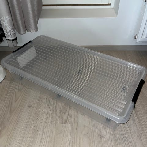 Myynnissä käytetty esim: sängyn alle mahtuva säilytyslaatikko pyörillä.