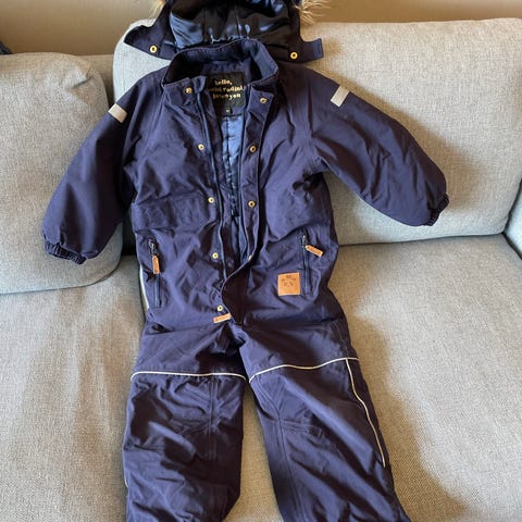 Myydään yhden käyttämä, mutta ulkopinnoiltaan osittain kulunut haalari. Huomasin kulumat vasta kuvatessa, lapsi oli pystynyt kuitenkin kuivana tässä haalarissa. Toki päiväkodissa pluskeleillä käyttävät kurahousuja.