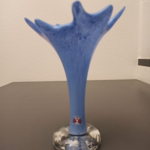 Studiolasin lasimaljakko sininen/kirkas v. 1977, korkeus korkeimmasta kohdasta n. 15cm.