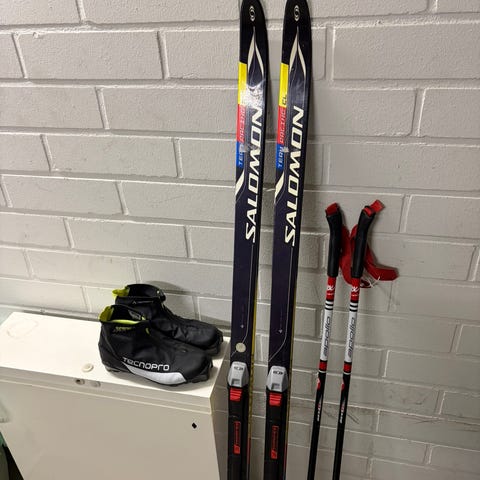 Lasten suksipaketti 160 cm perinteiseen murtomaahiihtoon.