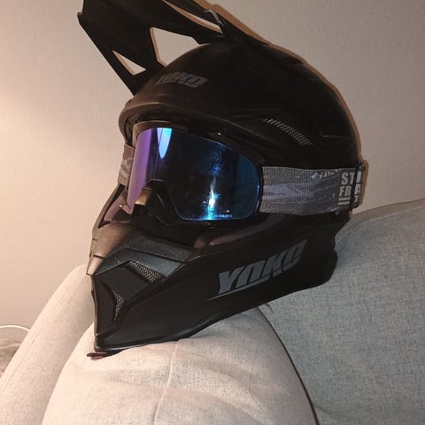 Käyttämätön Yoko motocross-kypärä mattamustana.