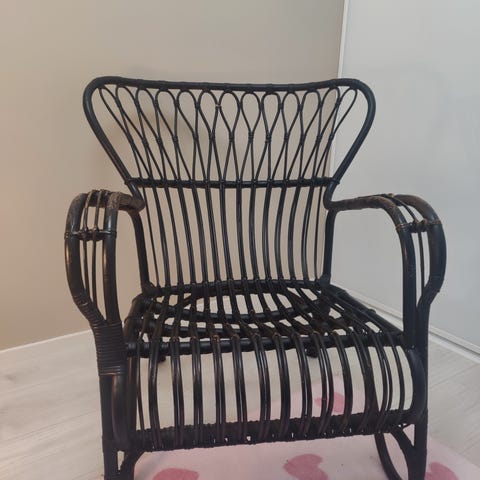 Kuvan mukainen siisti rottinkinen nojatuoli,