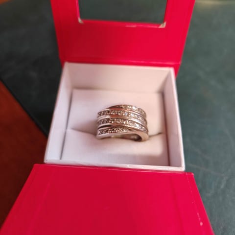 Hyväkuntoinen Esprit hopeinen sormus. Koko 7, tämä vastaa noin kokoa 17, eli menee parhaiten ohuiisin sormiin, yritin myös parhaani mukaan myös mitata (mitat kuvissa). Koru on vasta kiillotettu.
