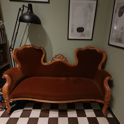 Myydään hieno siistissä kunnossa oleva anttiikkisohva. Käsinojat saa säädettyä.
