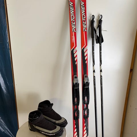 Siistikuntoinen lasten suksipaketti 150 cm perinteiseen murtomaahiihtoon. Setti on hyvin siistissä kunnossa.