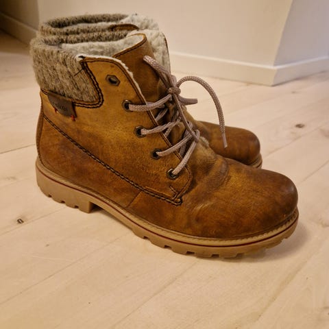 Vilpoiset päivät jatkuvat! Tästä erinomaisessa kunnossa, vain vähän käytetyt viininpunaiset Rieker talvikengät vuorella. Koko 38. Vetoketjut ja nauhat hyvässä kunnossa ja helpottavat säätämistä. Pohjat eivät ole yhtään kuluneet, joten pitoa on liukkaallakin säällä. Nouto Tuirasta.