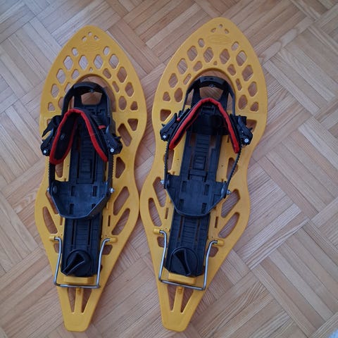 Ranskalaiset, laadukkaat ja hyväkuntoiset Morpho lumikengät. Kunnon tekoa. Käytetty 44 kokoisen kengän kanssa, säätöjä molempiin suuntiin paljon.