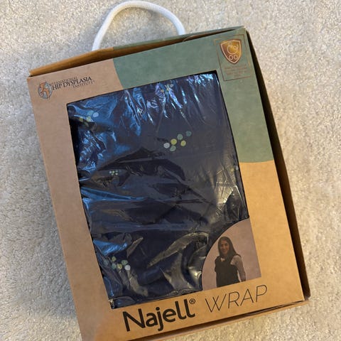 Najell merkkinen valmiiksi sidottu kantoliina, joten helppo käyttää. Pehmeä kangas, meillä ollu käytössä vastasyntyneellä. Koko XL, menee aikuisen vaatekoon mukaan.