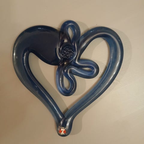 Ehjä Studiolasin vuoden 1977 lasia oleva sydänkoriste. Vain nouto ja käteinen