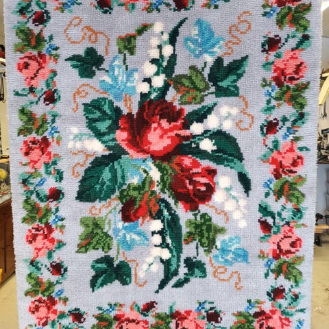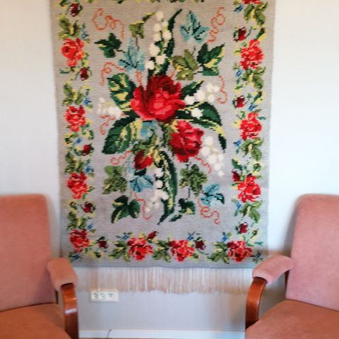 Hyväkuntoinen tumma ruusuryijy, koko 115 × 154
