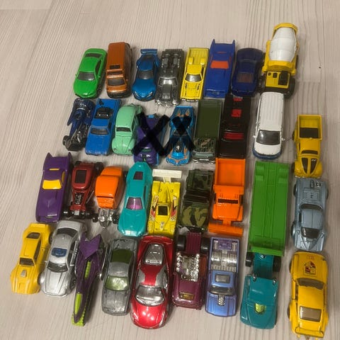 Tähän sopii pienet hot wheels autot. Autot voi laskea liukumäkenä alas päältä olevasta aukosta.