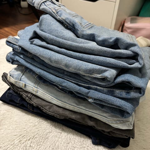 Gina Tricotin Silvia-farkut naisille, koko 27" eli noin S-kokoiselle. Lisää mittoja pyydettäessä. Siniset, vaaleanruskeat tikkaukset. Hinta edullinen, koska nappi vihertää ja kangas on paikoin kulunut eli käyttöikää on ilman korjauksia jäljellä rajallisesti.