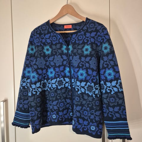 Oleana sininen neuletakki merinovillaa ja silkkiä. Sileä ja pehmeä neulos. Täysin moitteeton kunto. Valmistettu Norjassa.