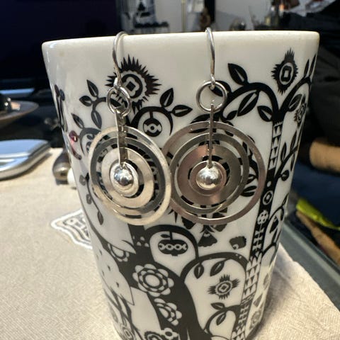 Myyntiin kuvien siistit harvinaiset hopea desinkki korvikset siisti kunto.