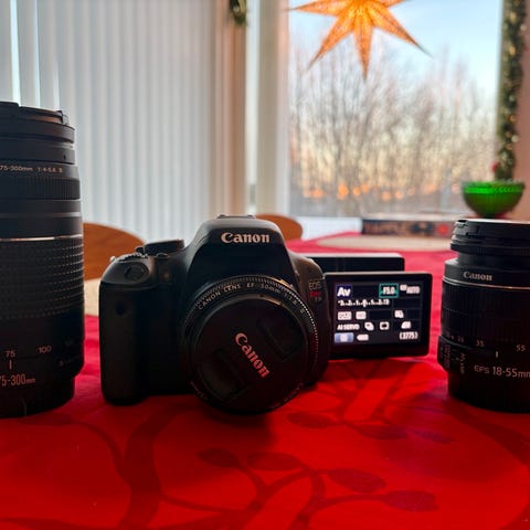 Kamera on varustettu Canon EF-S 18-55mm objektiivilla