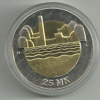Suomi 75 vuotta Leijonia juhlaraha, jossa on jääkiekkoilijan kuva ja Suomen vaakuna. Rahassa on teksti 'Suomi 75 vuotta Leijonia' ja vuosiluvut 1948-2023.