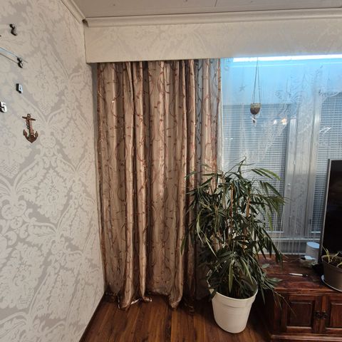 Leveys 300cm, kaksi viimeistä kuvaa verho taitettu.
