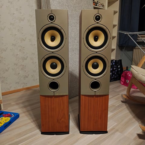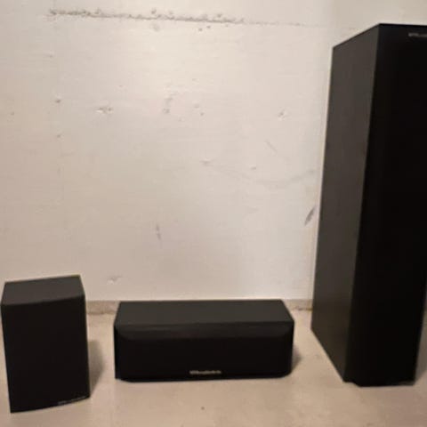 Myydään muuton vuoksi 3kpl otsikonmukaisia kaiuttimia jotka elämää nähneet. Muutamia naarmuja, kolhuja ja kahteen on porattu takapaneeliin seinäkiinnikeet jotka saa mukaan. Olleet siis takakaiuttimina ja keskikaiuttimena kotiteatterikäytössä. Kankaat puuttuu.