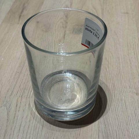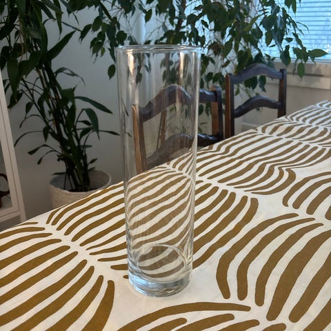 Lasinen tyylikäs maljakko kirkas, korkeus 25cm, suuaukko 7cm.