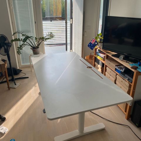 Myydään hyväkuntoinen sähkötoiminen työpöytä. Pöydän korkeutta voi säätää helposti nappia painamalla, joten se sopii erinomaisesti sekä istuma- että seisomatyöhön. Toimii moitteettomasti ja on ollut kevyessä kotitoimistokäytössä.
