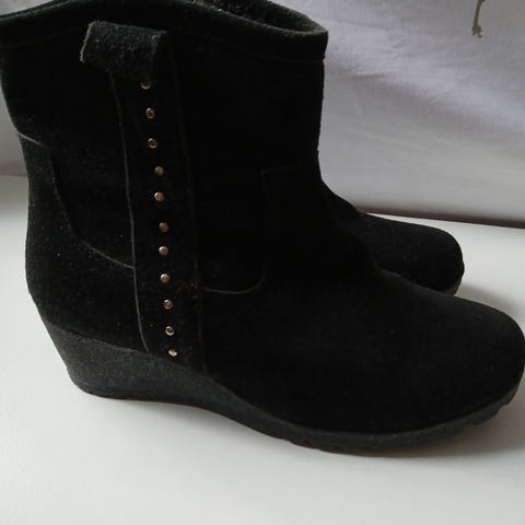 Mustat mokkanahkaiset talvinilkkurit. Lämmin karvavuori, sisäsivulla vetoketju ja ulkosivulla metallinen merkki missä lukee Cavolet. Koko 38