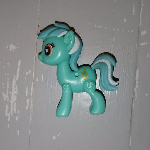 My Little Pony lasten lelu, jossa on pinkki hahmo ja teekuppi.