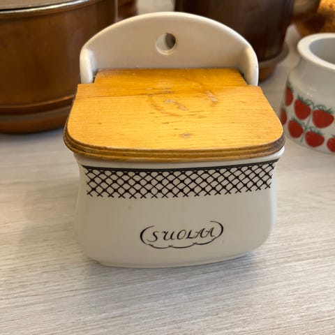 Arabia,Verkko-sarja,suola-astia piippuleimalla,pohjassa särö,edullisesti,korkeus