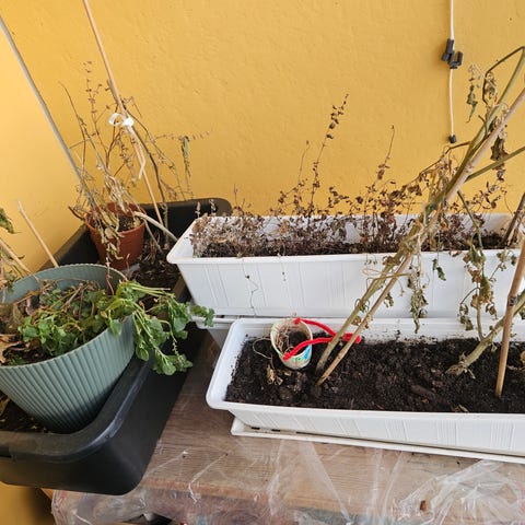 3 kasvia (2 kultapalmua,1 traakkipuu) ja altakasteluruukut sekä 1 tyhjä altakasteluruukku.