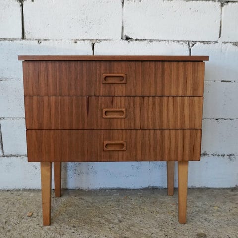 Kunnostettu tiikkinen lipasto. Kaunis patina.