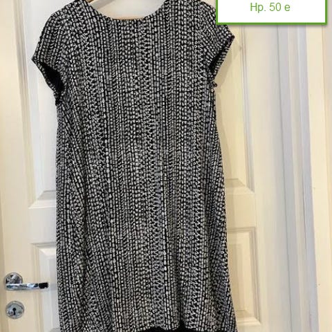 Marimekko Pekaani Punos mekko mustavalkoinen, valmistettu 100 % pellavasta. Koko 40. Takana vekki, joka tuo tilaa.