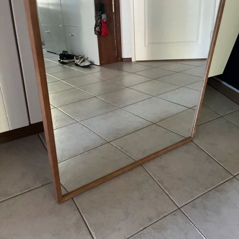 40 x 160 IKEA STAVE peili, jossa musta kehys. Peili on pitkä ja kapea, sopiva esimerkiksi käytävään tai makuuhuoneeseen. Peilin takana on kiinnikkeet seinälle ripustamista varten. Ylänurkassa pieni jälki (katso kuva)