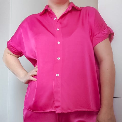 Tämä on kerrassaan upea vaate! Ei ole päässyt käyttöön, joten löytyisikö uusi omistaja? Kyseessä Made in Italy -merkkinen viskoosinen, satiininhohtoinen housupuku, joka sidotaan niskan ympäri pitkillä nauhoilla. Erittäin leveät lahkeet, laskeutuu hienosti. En löydä kulumaa tms. Selkä on avoin ja joustava, sopii monen kokoiselle. Kuvassa 165cm pitkän L-kokoisen yllä ja on juuri sopiva.