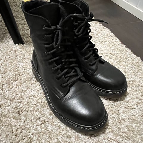 Emmshu -merkkiset nahkaiset maiharit koossa 39. Kerran käytetty.