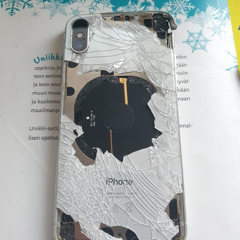 Näytössä tuollainen musta möykky, mutta jollain ihmeen lailla kosketus toimii myös siinä. Takalasi ihan nuuskana. Akun kunto 78. En tiedä mitä tästä voi pyytää, tarjouksia otetaan vastaan.