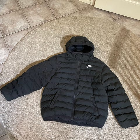 Nike nuorten siisti hupullinen toppatakki koko 158-170. Kunto erinomainen, ei kulumia, täytteet paikoillaan. Hankittu uutena kaupasta. Jäi pieneksi nopeasti, joten vain muutaman kerran ehti olla meillä käytössä.