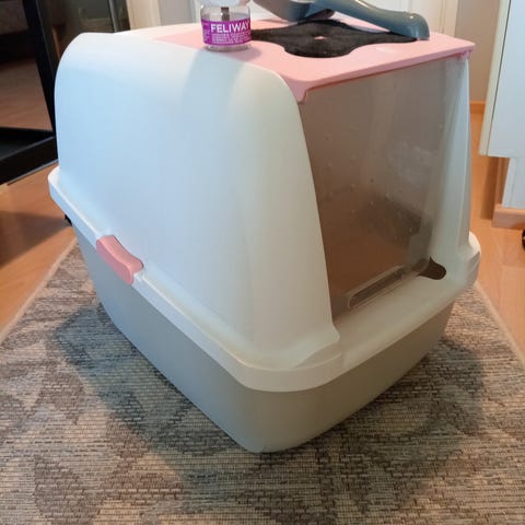 Uniikki kissalle kudottu käyttämätön nukkumapaikka. Meidän kissa ei tuonne halunnu koskaan mennä, koska sillä on lääkärikammo ja ei mee minnekään koppaan vapaaehtoisesti. Kopan koko n. 45cm x 35 x 24cm.