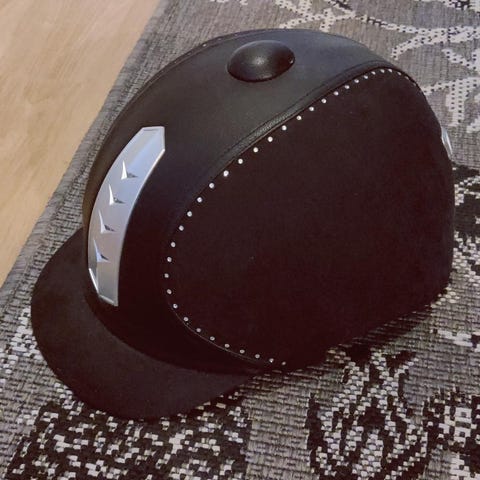HS Ratsastuskypärä, musta (vaikka kuvassa sinertää, livenä väri on musta). Koko 52 cm. Vähän käytetty ja täysin ehjä, ei ole kolhittu.