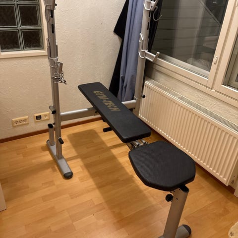 Uudenveroisessa kunnossa oleva tukeva säädettävä penkki kuntoiluun.