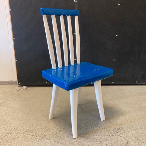 Vanha talonpoikaistuoli, joka vaatii kunnostusta. Osat ehjät. Alhaalta puuttuu yksi yhdyspinna. Liitokset ovat löysät, joten ovat helposti irrotettavissa.